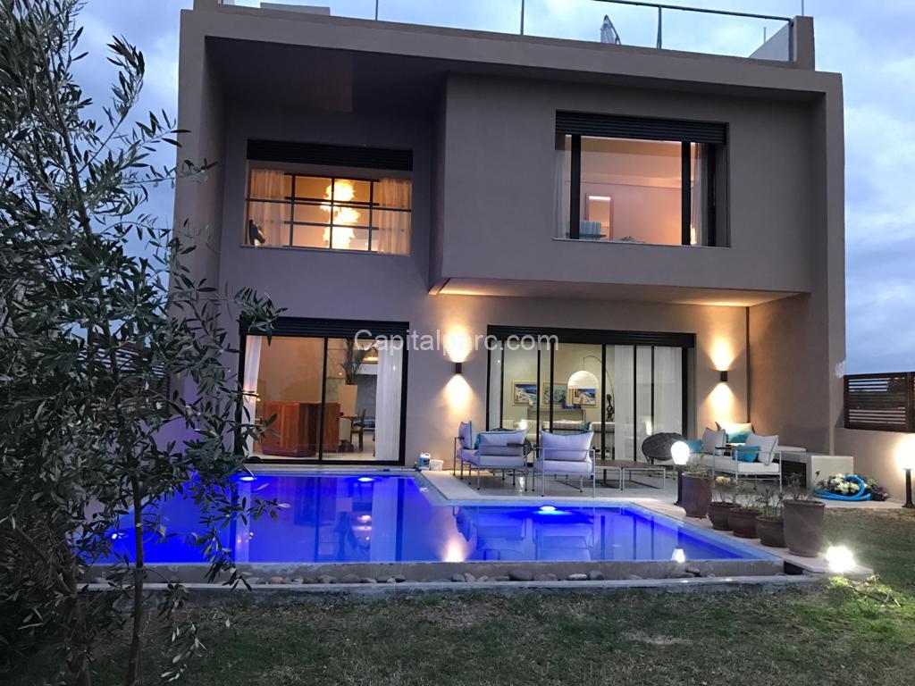 À la recherche de votre quiétude et sécurité , voici une belle villa taillée sur mesures pour répondre à vos attentes . Villa 380 m de terrain , 480 m de surface bâtie sur deux niveaux , la villa comprend également, 4 suites , doubles salons , une belle cuisine moderne , une chambres pour bonne avec sa salle de bain , une belle piscine . Villa moderne , belle architecture, résidence avec un parcours de golf 18 trous . sécurisée 24h/24