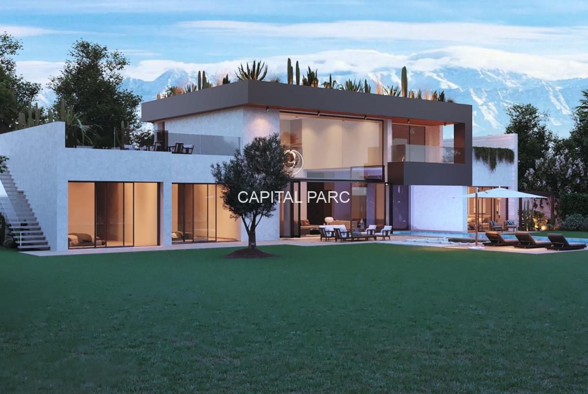 Les villas disposent également d’une piscine de 58 m² pour profiter de la tranquillité des lieux ainsi qu’un salon enterré. Avec un terrain de 2 225 m² à 2 235 m² et des surfaces habitables généreuses, ces villas offrent un cadre de vie exceptionnel alliant luxe et confort. Une terrasse extérieure surélevée de plus de 100 m², accessible depuis le jardin, offre une vue imprenable sur les chaînes de montagnes de l’Atlas. Un jardin commun de 300 m² est également aménagé avec une aire de jeux pour enfants.