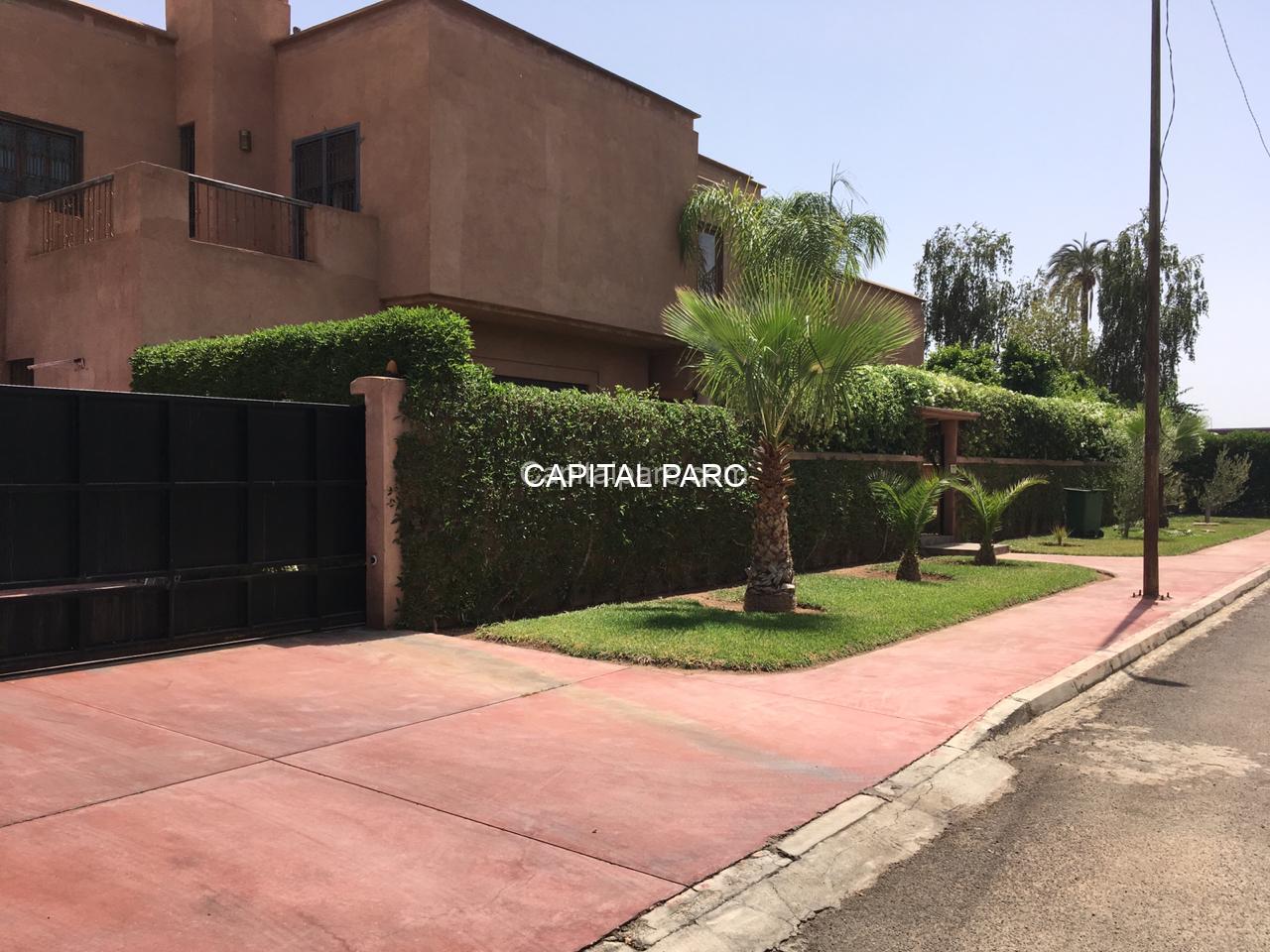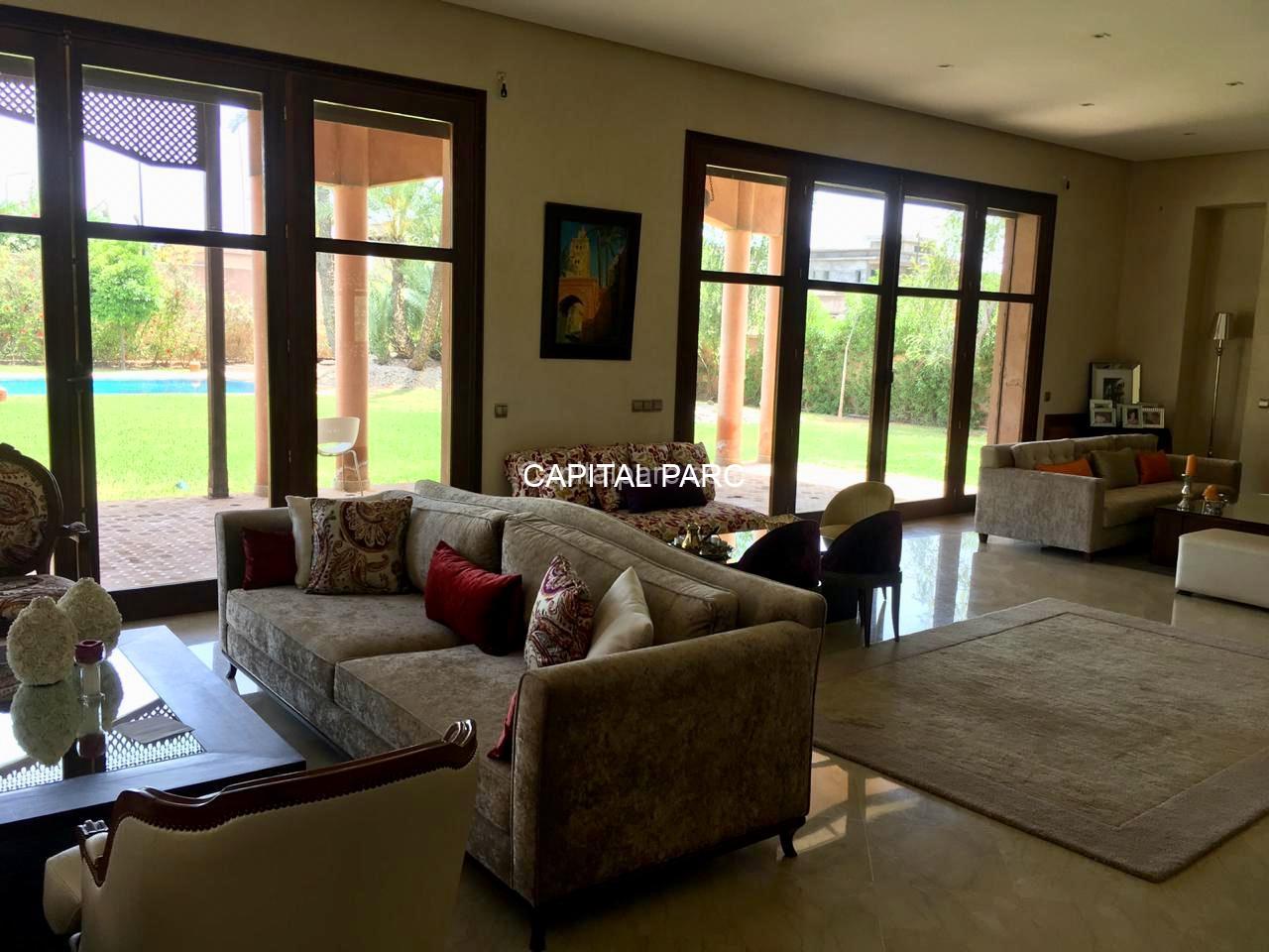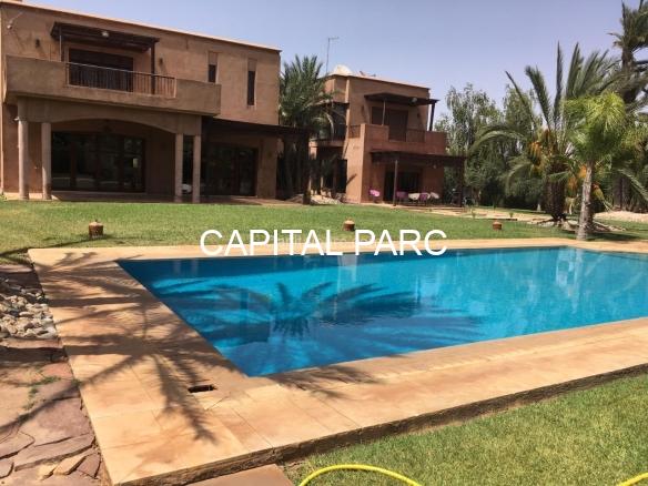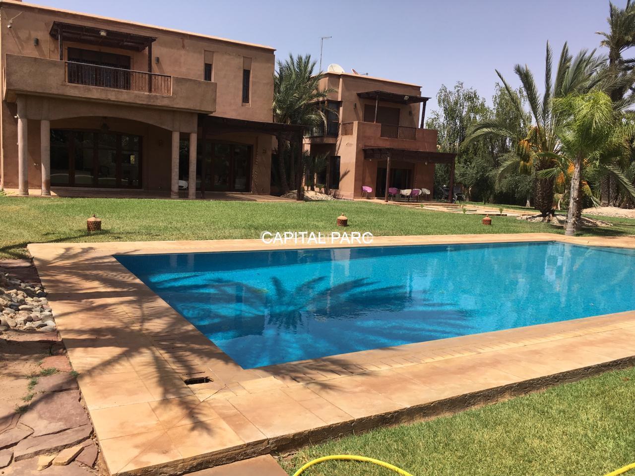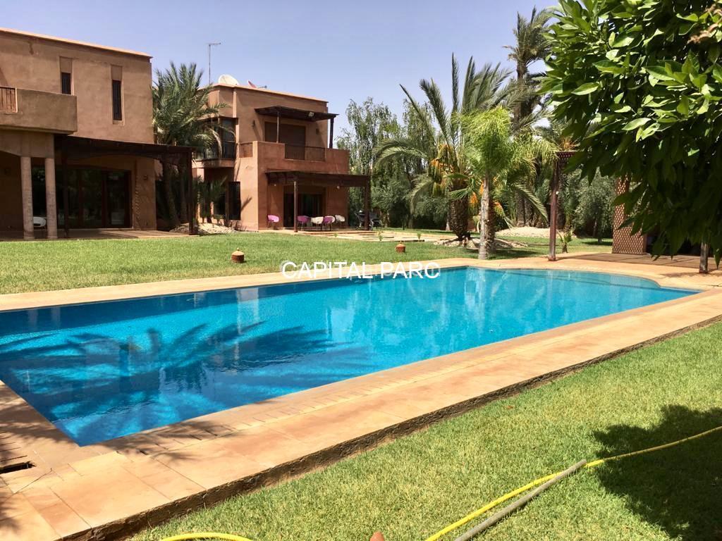 Marrakech , circuit de la palmeraie , entre palmiers centenaires , palais et villas cossues , non loin du prestigieux parcourt du golf , découvrez cette magnifique villa du maître . Avec son jardin de 2100 m , sa belle pelouse et son beau jardin planté de palmiers et Olivier , véritable confort pour le futur acquéreur de cette belle maison . La surface bâtie est de 620 m , elle se compose de 4 grandes suites , double salon modernes , un salon oriental , un salon-bureau , une grande cuisine bien équipée avec du matériel high-tech. Grande terrasses sur chaque chambre , belle vue sur la levée et couchée du soleil .