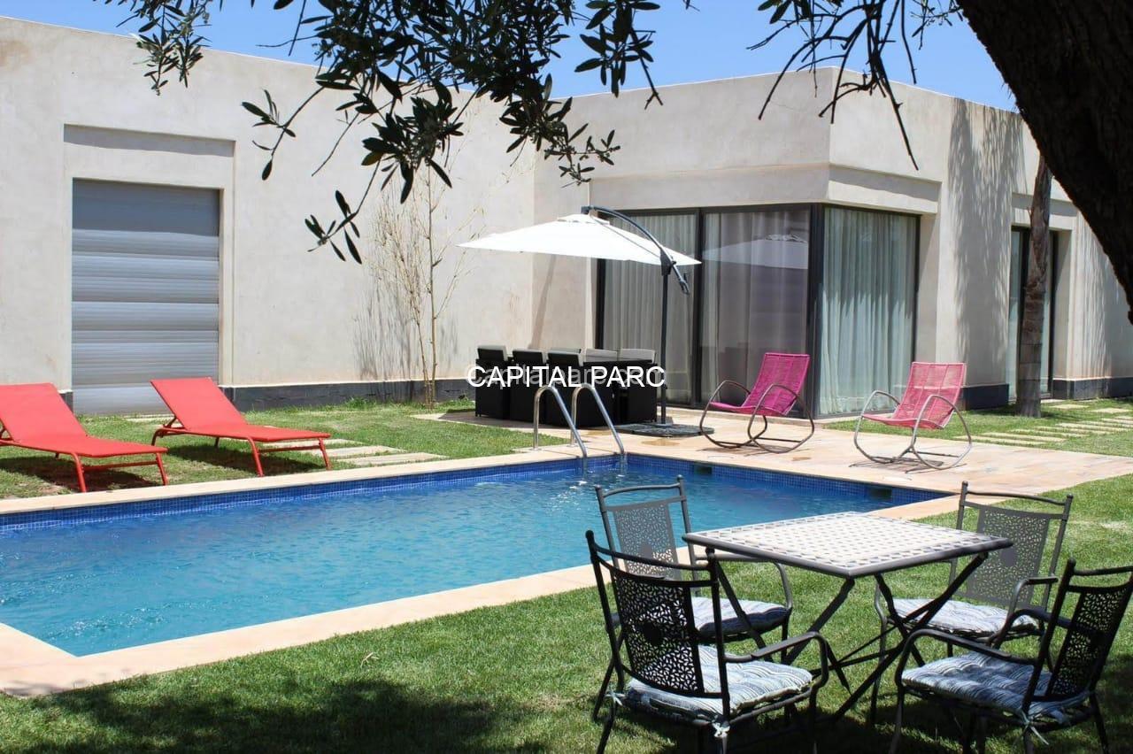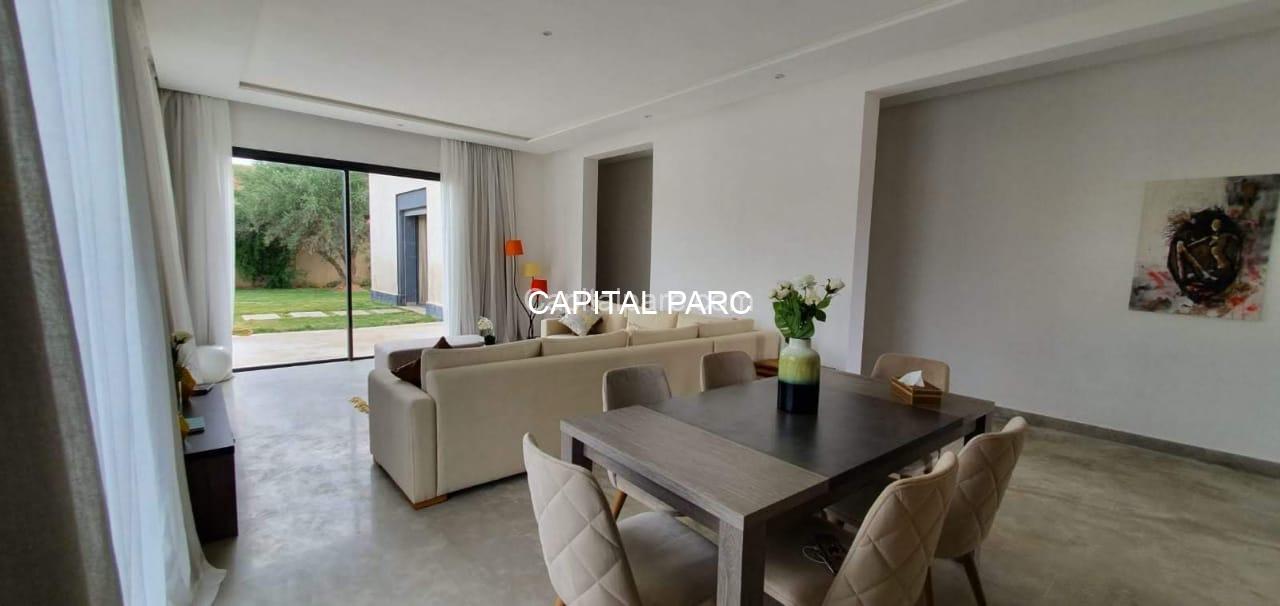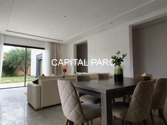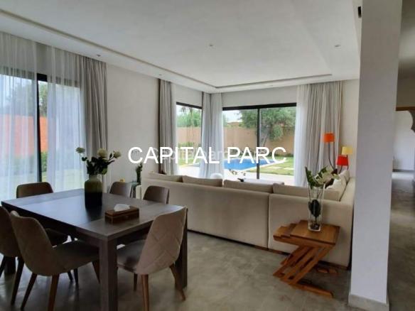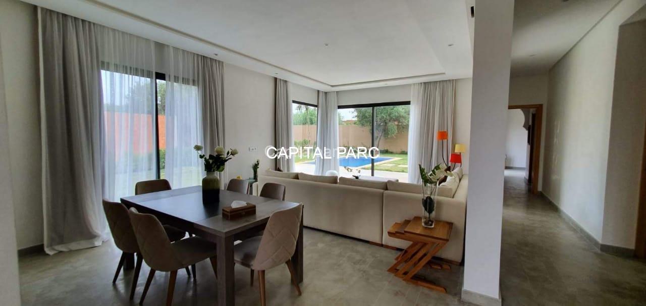 Villa contemporaine , ligne épurée , agencements de rêve belle hauteurs , paysage à couper le souffle , qualité de vie irréprochable , 127 m habitable , 3chambres , 2 salles de bains , toilette invitée, salon , cuisine équipée, des belles ouvertures avec vu sur jardin et piscine . Retrouver votre sérénité à 20 minutes de marrrakech.