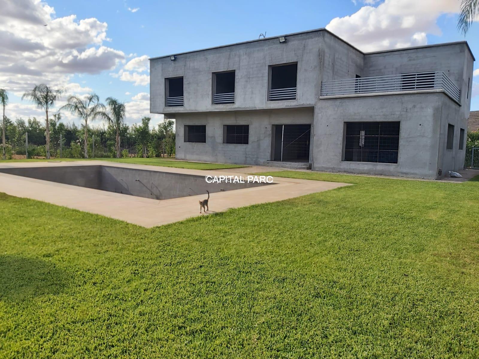 Belle villa semi finie sur une prospérité d’1 ha , villa située à 20km de marrrakech elle se compose comme suit : Une villa 400m2 habitable composée de : 04 chambres à coucher avec salle de bain vue sur jardin et piscine