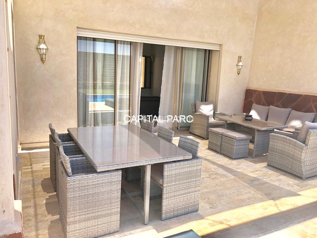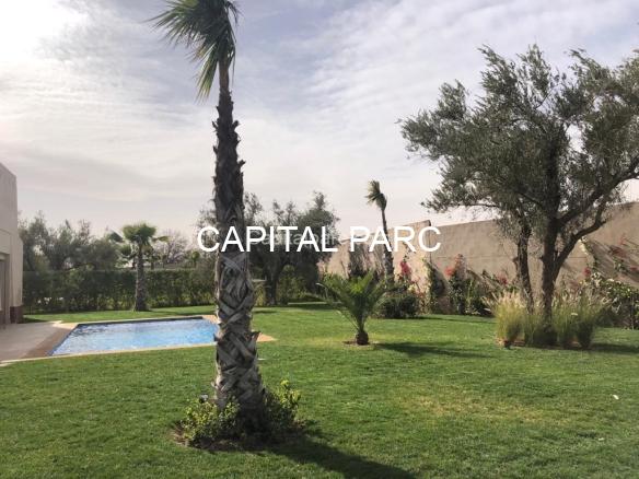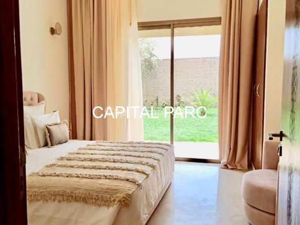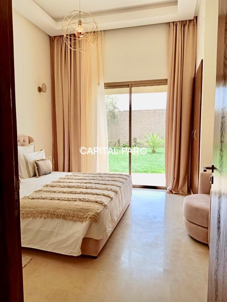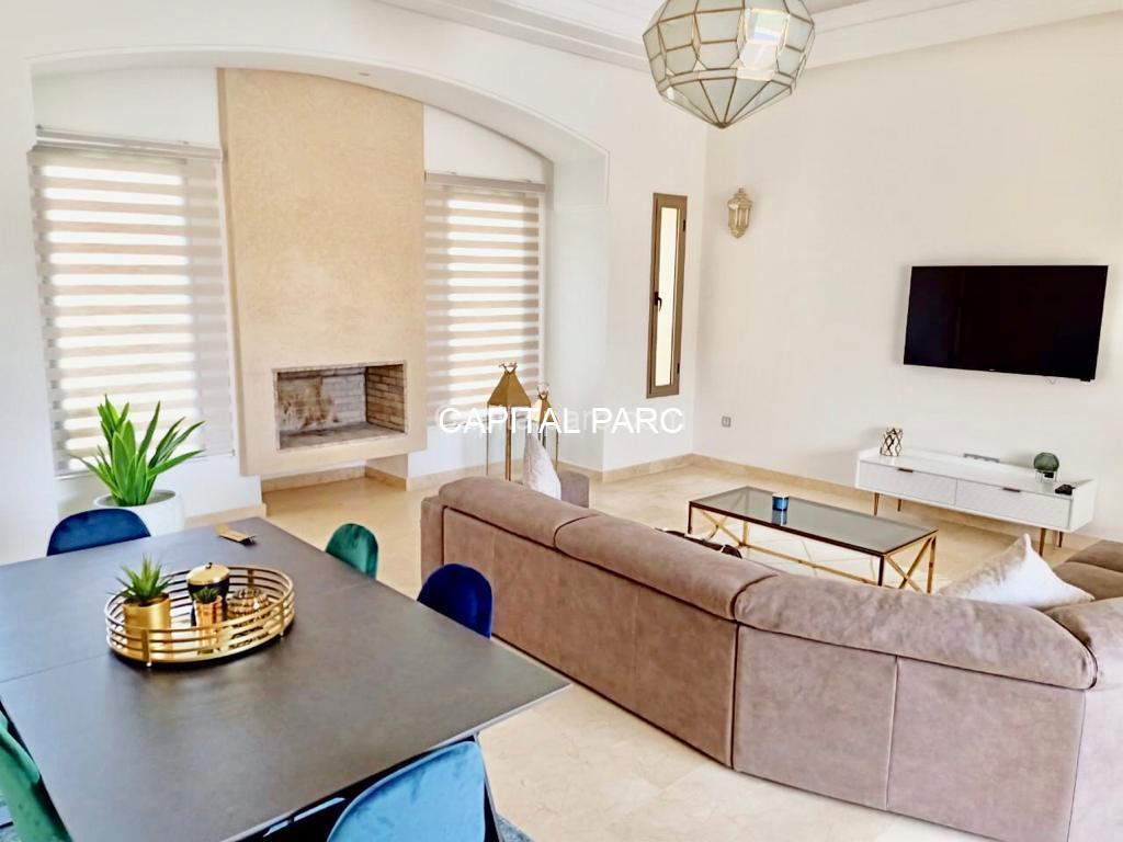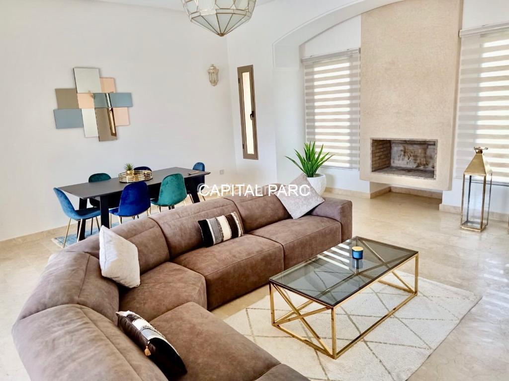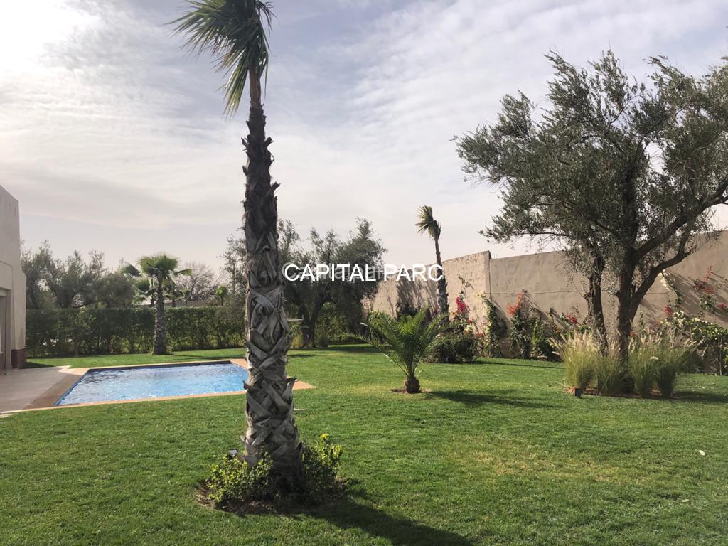Très belle villa moderne avec une belle architecture marocaine contemporaine. 800 m de jardin , villa isolée , 150 m habitable, 3 chambres ,3 salles de bains cuisine , un grand salon avec cheminée terrasse à l’étage piscine et jardin privatifs